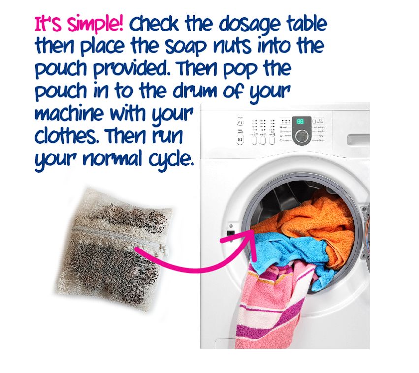 Stop de gewenste hoeveelheid zeep noten in de kleine meegeleverde zak en sluit deze goed .