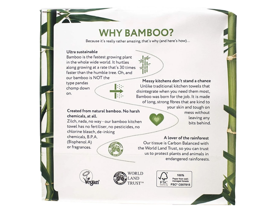 Hernieuwbaar - Gemaakt van 100% bamboe, de keukenrol van The Cheeky Panda is super duurzaam en volledig recyclebaar.